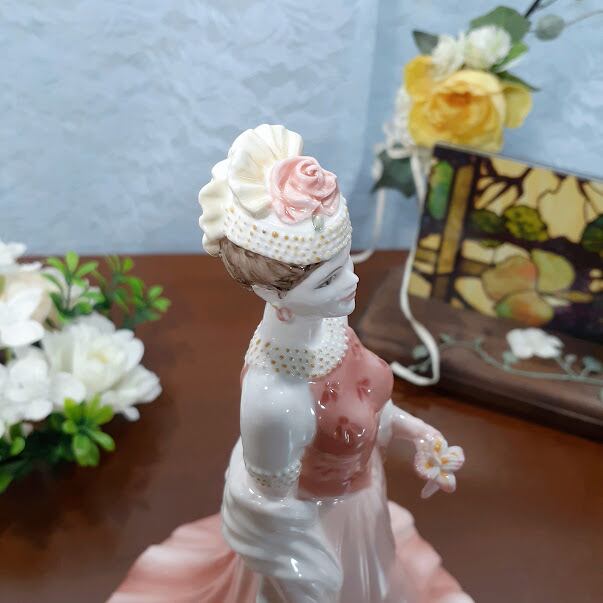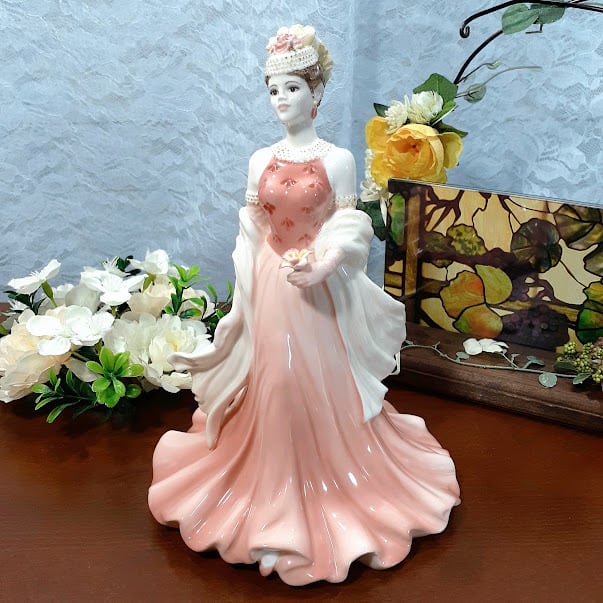 英国 【コールポート COALPORT】★スー(Sue)★美人 淡いピンクドレス 愛らしいフィギュリン 薔薇 優雅 アンティーク フィギュア イギリス 陶器人形